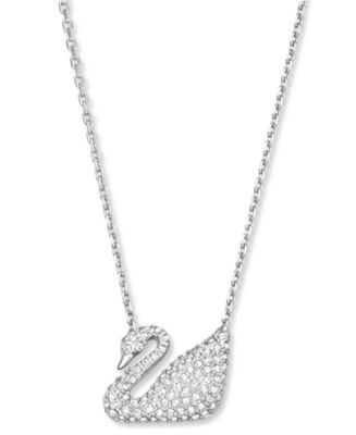 Macy's Swarovski Silver Tone Crystal Swan Pendant Necklace_海淘网