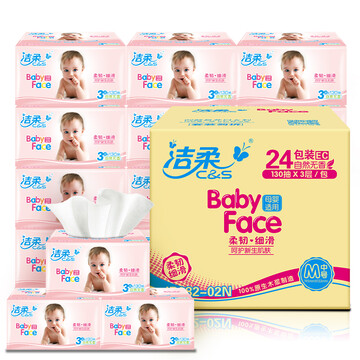 京东商城 【洁柔抽纸】【京东超市】洁柔(C&S)抽纸 洁柔Baby face130抽抽取式纸面巾(24包装)(M号)(整箱销售)_海淘网
