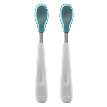 美国OXO Tot婴幼儿不锈钢勺 硅胶头防滑手柄 水蓝色