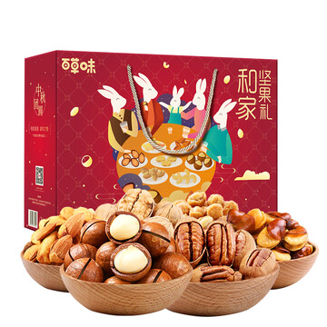 京东商城 【百草味坚果礼盒】【京东超市】百草味 坚果礼盒 送礼8袋装 和家欢礼盒1458g/盒干果组合 年货零食大礼包 _海淘网