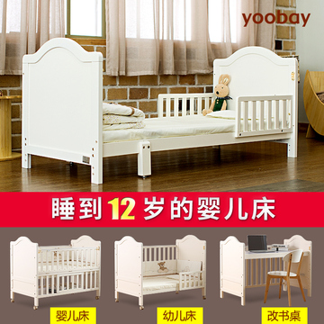 【天猫】 友贝yoobay多功能欧式实木婴儿床实木欧式bb宝宝儿童床白色可加长