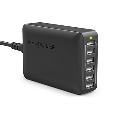 【美国亚马逊】 RAVPower 60W 12A 6-Port USB Charger Desktop Charger Charging Station with iSmart Technology (Black): Electronics