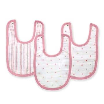 aden+anais口水兜由三层纱布缝合,材质非常柔软厚实,有三个扣子,可以根据宝宝的颈围灵活调节长度