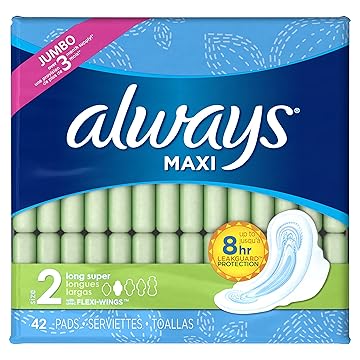 美国亚马逊 Always Maxi Size 2 Long Pads with Wings, Super Absorbency,Unscented, 42 Count (Packaging May Vary): Health & Personal Care_海淘网