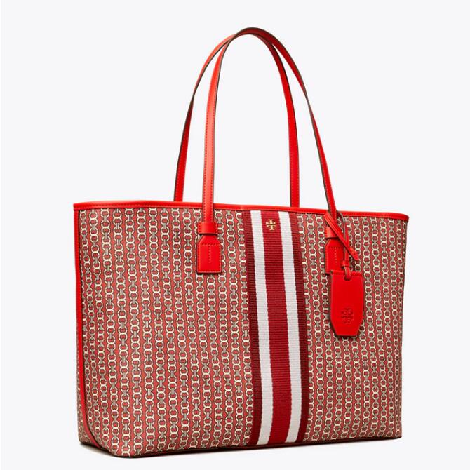 Tory Burch 汤丽柏琦 Gemini Link 系列印花托特包就满足了所有需求,颜色清爽适合通勤,面料带涂层不用担心挂花弄脏,软硬适中,自重极轻,大号可以放得下 Macbook。