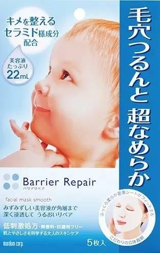 添加有2倍的容易渗透至角质层内部的纳米玻尿酸,富含27ml渗透力高的浓稠美容精华液。使用一次即可体会到超级补水滋润效果。Barrier Repair 面膜 平滑肌肤款