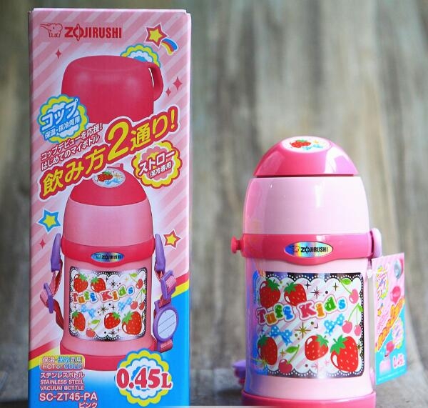 款式卡通可爱,可以让宝宝们喜欢上喝水,现这款象印SC-ZT45两用儿童汽车水杯,比之前老款粉胖子还要漂亮哦,而且是两用的哦,双盖两用不锈钢吸管杯保温保冷杯,尺寸为10×8.5×18厘米,原产地泰国,容量为450ml,口径为5cm,内胆材质是不锈钢(带食物材质涂层),本体材质是不锈钢(树脂涂层),图案为贴纸。