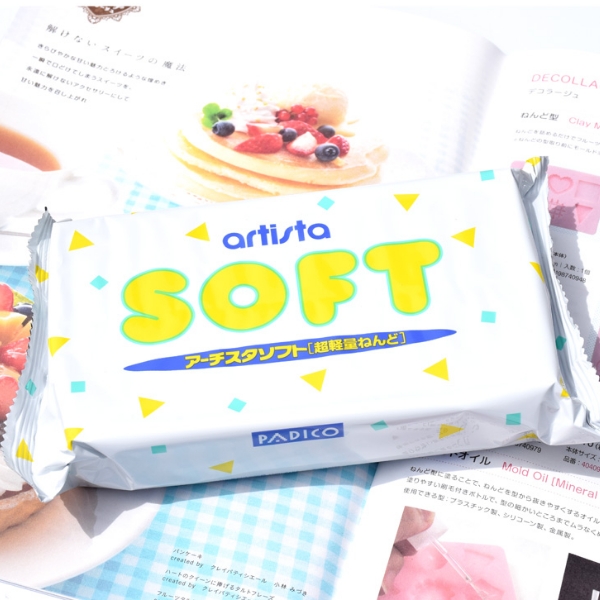 此款日本PADICO artista soft 超轻量粘土,网络上很多人叫纸粘土,主要材质成分为细小中空树脂、防霉剂、水等。质地柔软好捏塑,可用压板或者粘土棒撵得很薄,做好成品可定型风干,干后有一定弹性,是做花卉、仿真植物、玩偶、仿真食材的极佳粘土材料,也可加水做奶油土,DIY彩色蛋糕不混色,更可以DIY各种甜点等。略微有点沾手,拿出来晾一会儿,或在手上涂点婴儿油、凡士林甚至面霜等即可解决沾手问题。