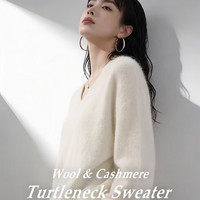 【京东直采】2026新年羊绒羊毛拉绒衫女士百搭打底毛衣无缝针织衫 V领-羽毛白 均码 (90-145斤) 【3-15天发货】
