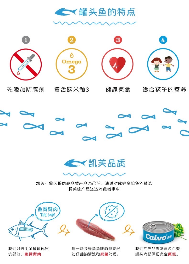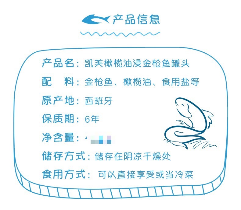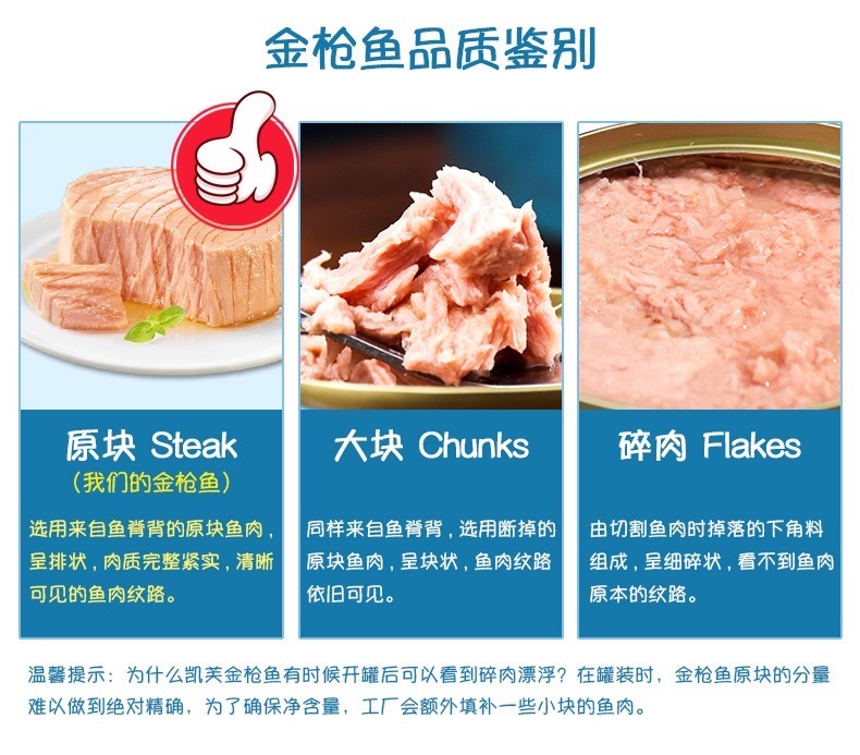 熟练烹饪金枪鱼,橄榄油或盐调配成黄金配比,,且不使用任何防腐剂,制成的鱼罐头保持状态,营养丰富,味道经久不衰