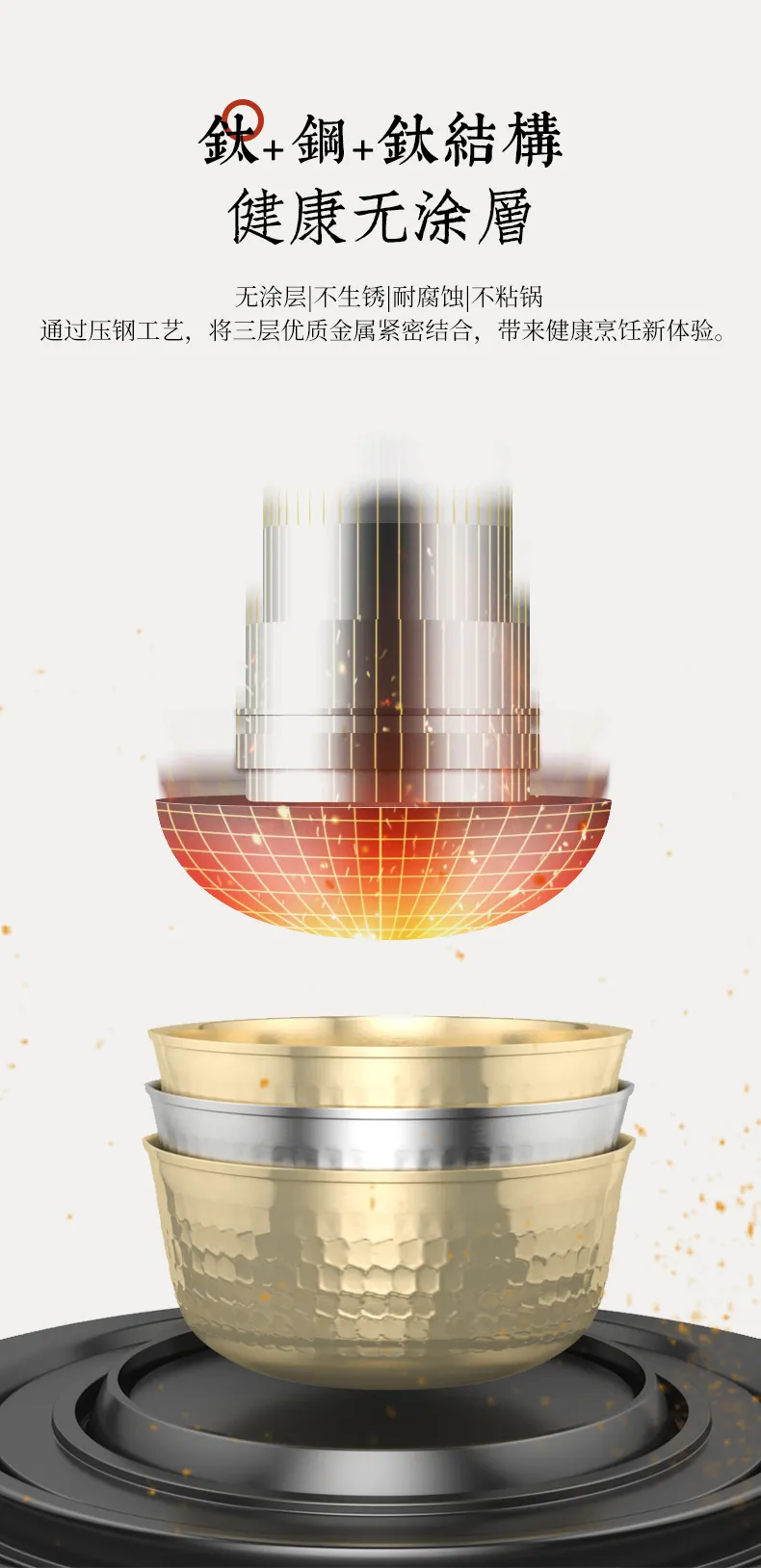 锅身是钛+钢+钛结构