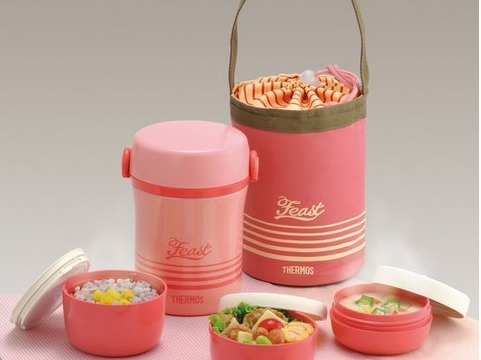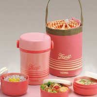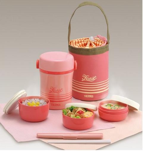Thermos膳魔师的保温用品大家也都比较信赖,这款保温饭盒,包含携带包、筷子盒、菜汤饭碗共3个外加一个保温外桶,桶体采用的是真空构造的不锈钢材质,卡扣式开合设计也很方便稳固。据测保温效果在96度温水,保6小时后52度,基本可以满足夏季的保温需要。菜盒0.22L,饭盒0.27L,汤盒0.2L,加热时要取下盖子。外袋也可以根据所带容器的多少调整摁扣高低。