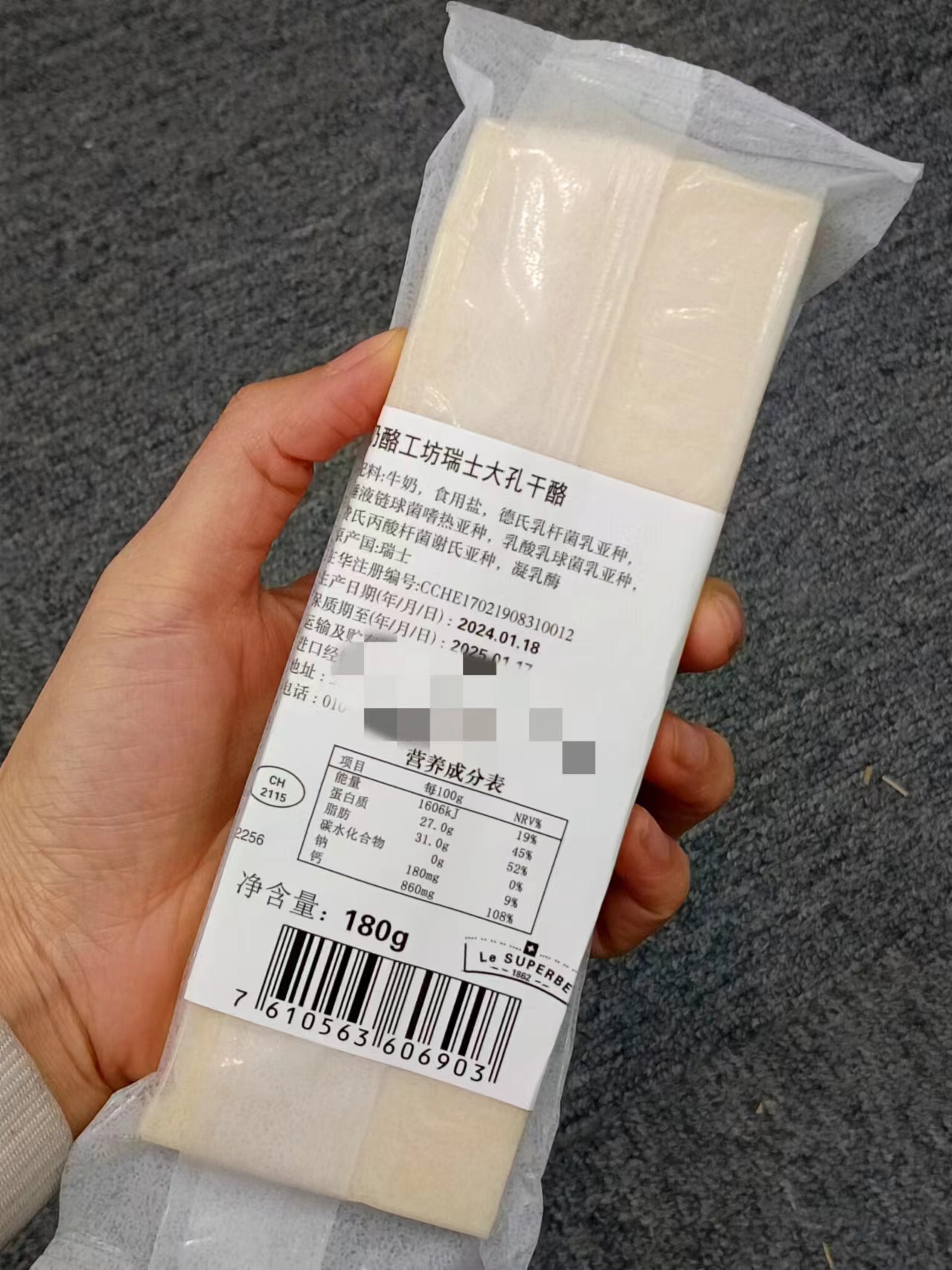 此产品为天然干酪,表面可能会有些白点,这是天然的结晶,结晶越多口感越醇厚,请放心食用。