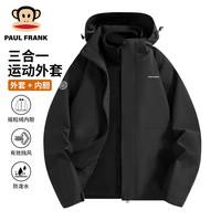大嘴猴(paul frank)户外三合一外套秋冬防风抓绒可拆卸内胆运动夹克男 黑色 XL