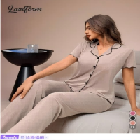 Lazeform 女士休闲宽松柔软垂坠轻盈夏季针织卡其色两件套 - 荷叶边短袖上衣和裤子,多色多码可选,女士睡衣套装畅销榜第一名。结账时最多可获得35 个SHEIN 积分。 Lazeform Casual Loose Relaxed Soft Drapey Lightweight