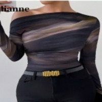 Selianne 大理石渐变印花不对称领长袖褶皱T恤 女士上衣 春秋款,多色多码可选,结账时最多可获得26个SHEIN 积分。 Selianne Marble Gradient Print Asymmetric Asymmetrical Neck Long Sleeve T-Sh