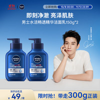 妮维雅(NIVEA)男士【王子奇】补水保湿水活畅透精华洁面乳150g*2洗面奶