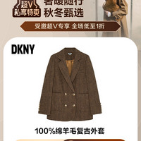 DKNY | 【绵羊毛】复古人字纹双排扣正肩西装外套女大衣25秋季