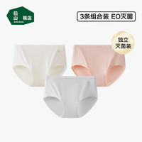 松山棉店【免洗即穿】新疆棉内裤女无痕透气三角裤中腰女士内裤 米白+浅灰+凡粉 3条 L