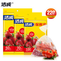 洁成保鲜袋食品级一次性抽取式家用冷藏冷冻微波炉可用 大中小组合装共220只