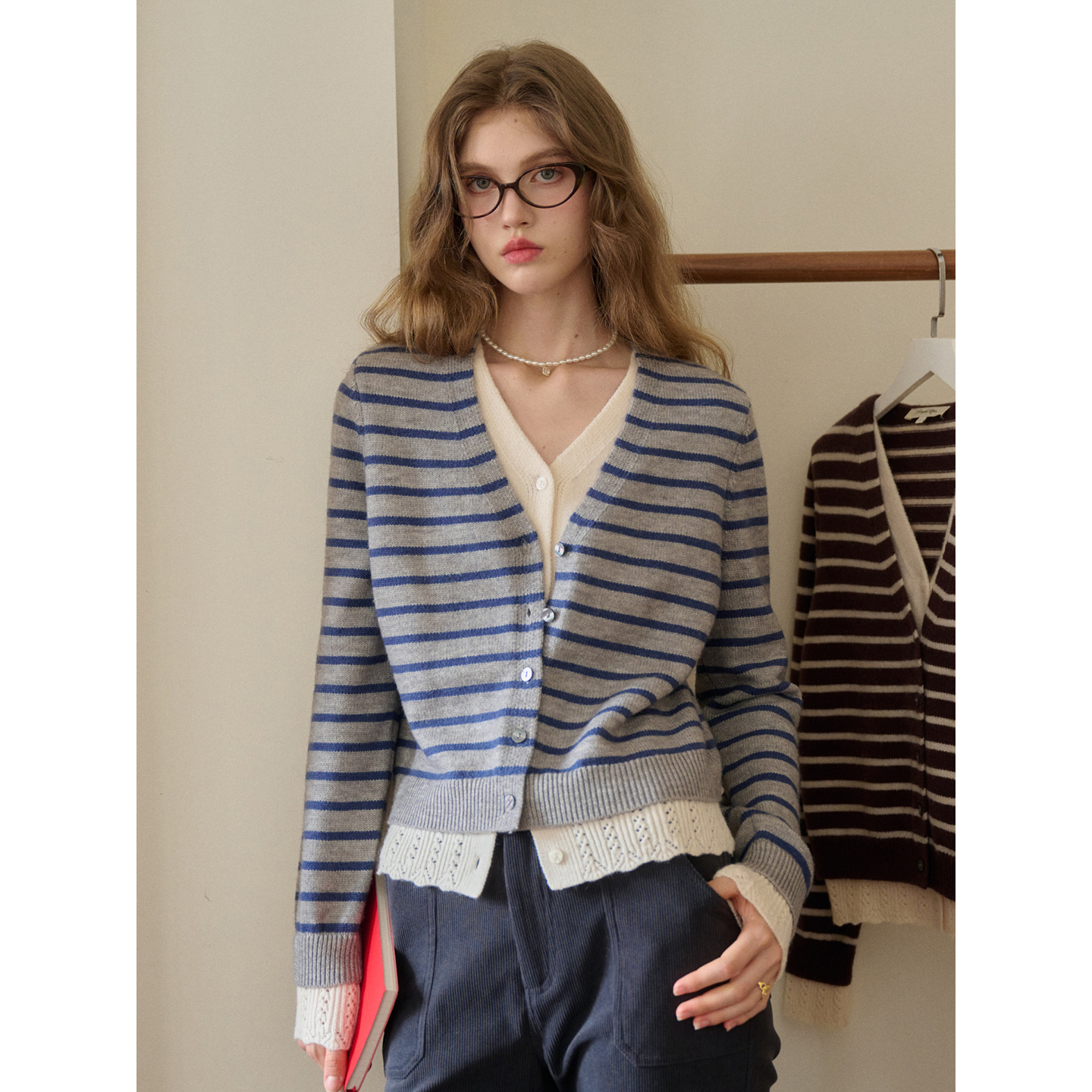 【所有女生的衣橱直播间】SimpleRetroV领撞色假两件毛衣针织开衫