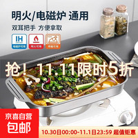不锈钢烤鱼盘长方形深盘托盘鱼盘家用电磁炉专用烤鱼炉 双柄【32*19*5cm】浅款 无盖
