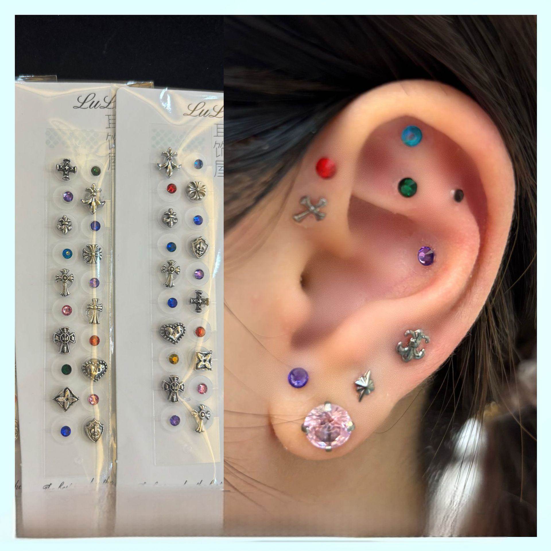 朋克风耳骨钉中医耳穴贴饰品y2k小众设计复古合金个性辣妹耳饰品