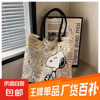卡通新款史努比帆布包大容量单肩通勤托特帆布包女耐用环保手提袋 史努比帆布袋