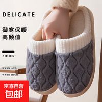 2025新款秋冬季棉拖鞋男家居室内防滑外穿情侣加绒保暖月子棉鞋女 波浪毛口棉拖-灰色 44-45 适合43-44