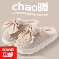 棉拖鞋女秋冬季2024新款家居家用情侣室内外保暖厚底防滑毛毛拖鞋 卡其色 38-39 【建议拍大一码】