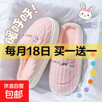 小熊兔子卡通棉拖鞋家用室内厚底棉拖鞋女保暖防滑毛毛拖鞋踩屎感 粉红色 38-39 【适合37-38】