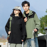 京喜指数户外冲锋夹克男女防水防风防水外套情侣外套夹克登山休闲 雪松绿 2XL (推荐145-160斤)