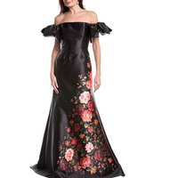 2折 $365.99(约2562.15元) Rene Ruiz 露肩印花绉纱长裙_海淘网