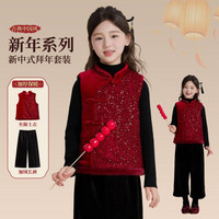 富罗迷 | 儿童夹棉背心上装+毛绒长裤两件套冬季女童新中式拜年服套装
