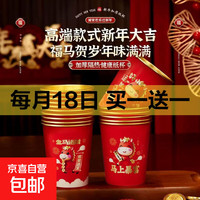 2026马年新年纸杯红色新年过年乔迁喜庆金箔一次性杯子加厚 红色 50只