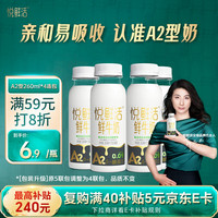 悦鲜活鲜牛奶 A2β-酪蛋白 260ml*4瓶/组 巴氏乳 低温鲜奶