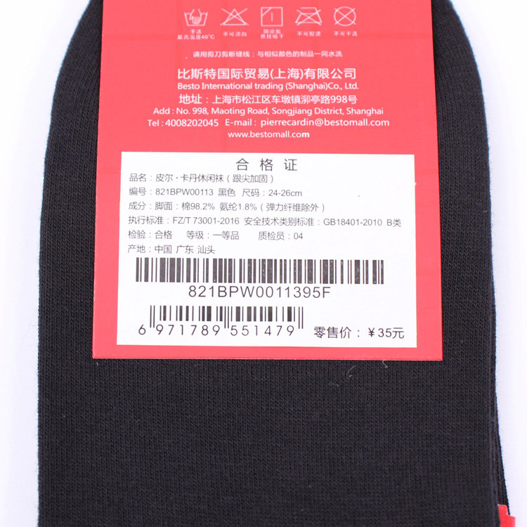 专柜正品皮尔卡丹商务纯棉男袜