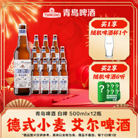 青岛啤酒全麦白啤 原麦汁浓度10°P 年货送礼 500mL 12瓶 整箱装