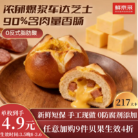 鲜京采芝士香肠碱水球面包贝果手工现作健康贝果早餐0防腐剂90g/枚