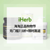 iHerb 现有 海淘购物节 无门槛7.5折。需要使用优惠码:3ZP26。TIPS:此活动仅限中国大陆地区参加。每个账号折扣码限用2次,且高优惠金额为$50(折合人民币约¥352)。少部分商品不参加活动,需自行加车测试。有效期至北京时间