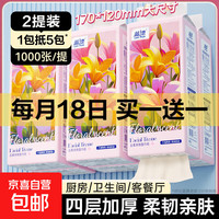 山姆油画风蓝漂纸巾悬挂式抽纸面巾纸底部挂抽 1000张4层加厚 【买一赠一到手4包】 4层 1000张*2提