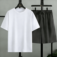 夏季新款男士冰感轻薄速干休闲运动套装时尚透气健身跑步两件套 超值两件套【凉感速干运动套装】白色短袖+黑色短裤 3XL【建议145-165斤】