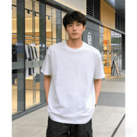 200克高紧赛纯棉三本针圆领宽松落肩短袖T恤纯色短袖 T600-白色 M
