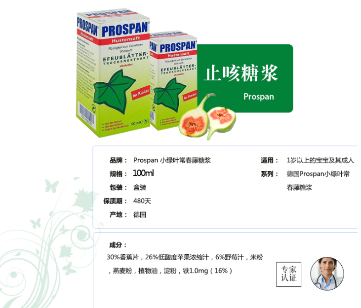 德国直邮Prospan 小绿叶常春藤婴幼儿止咳糖浆100ml低至48元