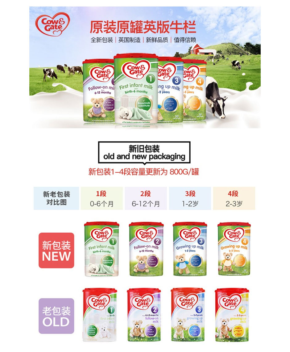 保税仓 Cow&Gate 英国牛栏 婴幼儿奶粉 2段 6~12个月 800g*2 2罐包邮包税 【新旧包装随机发货】低至248元