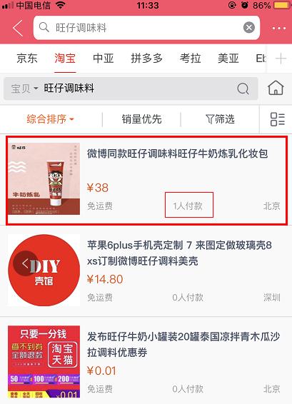 小编搜了一下淘宝已经有在卖旺仔牛奶炼乳了,还月销1呢,不知道是哪位大佬呀~