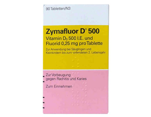○ 有效预防小儿佝偻病(软骨病)及龋齿,无任何副作用 ○ 提高肌体对钙、磷的吸收,使血浆钙和血浆磷的水平达到饱和程度 ○ 促进生长和骨骼钙化,促进牙齿健全 ○ 通过肠壁增加磷的吸收○ 维持血液中柠檬酸盐的正常水平,Zymafluor D500主要成分是维生素D3和氟。