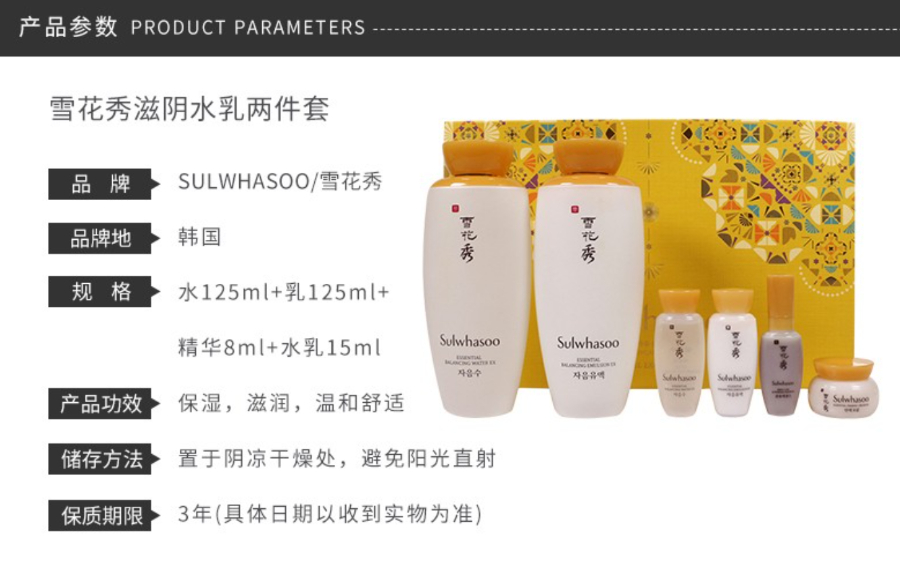 雪花秀滋阴水乳套装 弹力面霜3件套