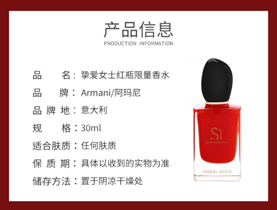 ARMANI/阿玛尼 SI PASSIONE挚爱女士真情流露红瓶限量香水EDP 30ML