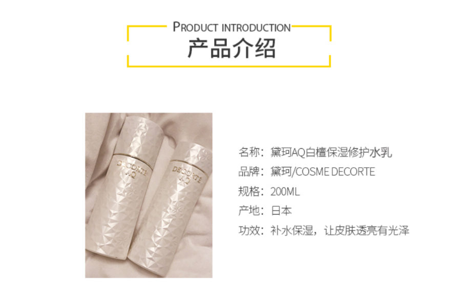 DECORTE/黛珂 白檀修护美白化妆水 200ml+AQ新白檀美白渗透乳液 200ml